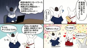 訓練マンガ「条件は減らすと就職がぐっと近づくよ」