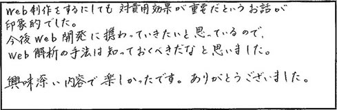 各ウェブ解析士認定講座を受講された方の声を紹介しています。
