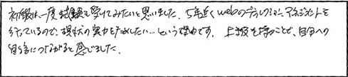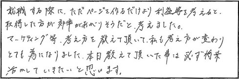 ●就職する際に、ただページを作るより利益等を考えると、取得した方が効率が上がりそうだと考えました。マーケティング等、考え方を教えて頂いて私も考え方が変わりとても為になりました。本日教えて頂いた事は必ず将来活かしていきたいと思います。