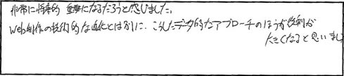 ●非常に将来的、重要になるだろうと感じました。Web制作の技術的な進化とは別に、こうしたデータ的なアプローチのほうが役割が大きくなると思いました。