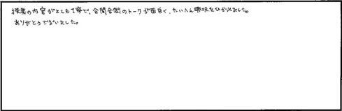 ●授業の内容がとても丁寧で、合間合間のトークが面白く、大変興味をひかれました。ありがとうございました。