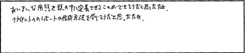●あいまいな用語を頭の中に定着させることが出来そうだと思ったため。クライアントのレポートの作成方法を学べ総だと思ったため。