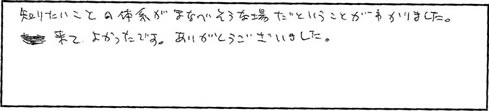 ●知りたいことの体系がまなべそうな場だということがわかりました。来てよかったです。ありがとうございました。
